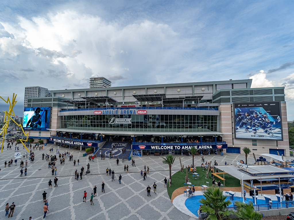 Benchmark International Arena (formerly Amalie Arena), a multipurpose live events venue in downtown Tampa, Florida, underwent a major digital platform upgrade from owner-representative Sensory Interactive, technology integrator AmpThink, and SNA Displays. The extensive enhancements were implemented on behalf of Vinik Sports Group, which manages the NHL's Tampa Bay Lightning as well as the arena. Located next door to the Tampa Bay History Center and one mile from the Tampa Convention Center, the 20,000-seat venue hosts concerts and other live events in addition to being the Lightning's home. The arena’s technology upgrades include a large-format corner display, 220 linear feet of LED ribbon, and several LED kiosks featuring themed content to enhance gameday excitement.